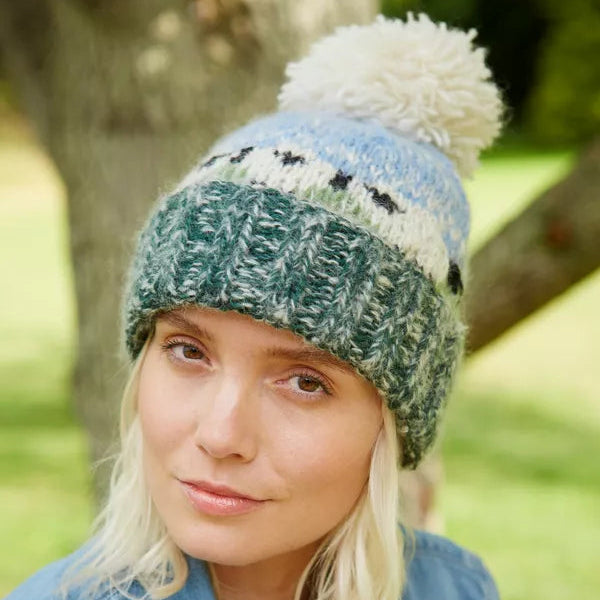 Pachamama Knitted Bobble Beanie - Hazy Sheep (Sherpa Fleece)