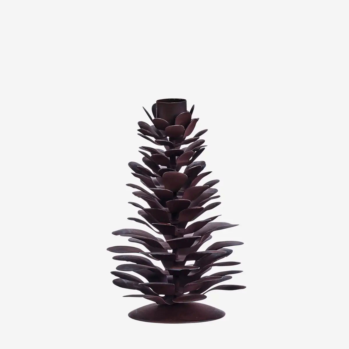This candle holder is crafted from iron and features a rust brown finish, capturing the essence of a pinecone. Its design brings the natural world into any interior space, offering a balance of simplicity and elegance. Made in India, this piece reflects skilled craftsmanship and is ideal for creating a warm and inviting atmosphere.
