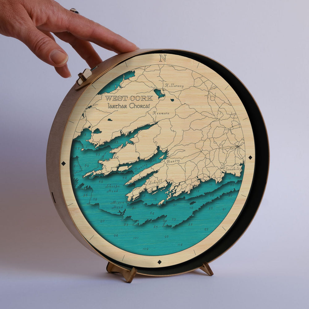 Experience the charm and creativity of Cork City with this beautifully handcrafted round wooden map. Featuring the winding River Lee, its iconic bridges, and a maze of historic streets, this map captures the essence of Ireland’s southern capital.