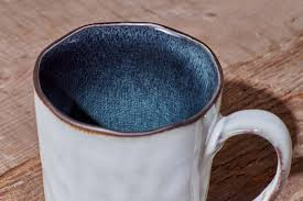 Simi Tall Mugs have an appealing deep blue glaze, complemented by a contrasting off-white exterior.