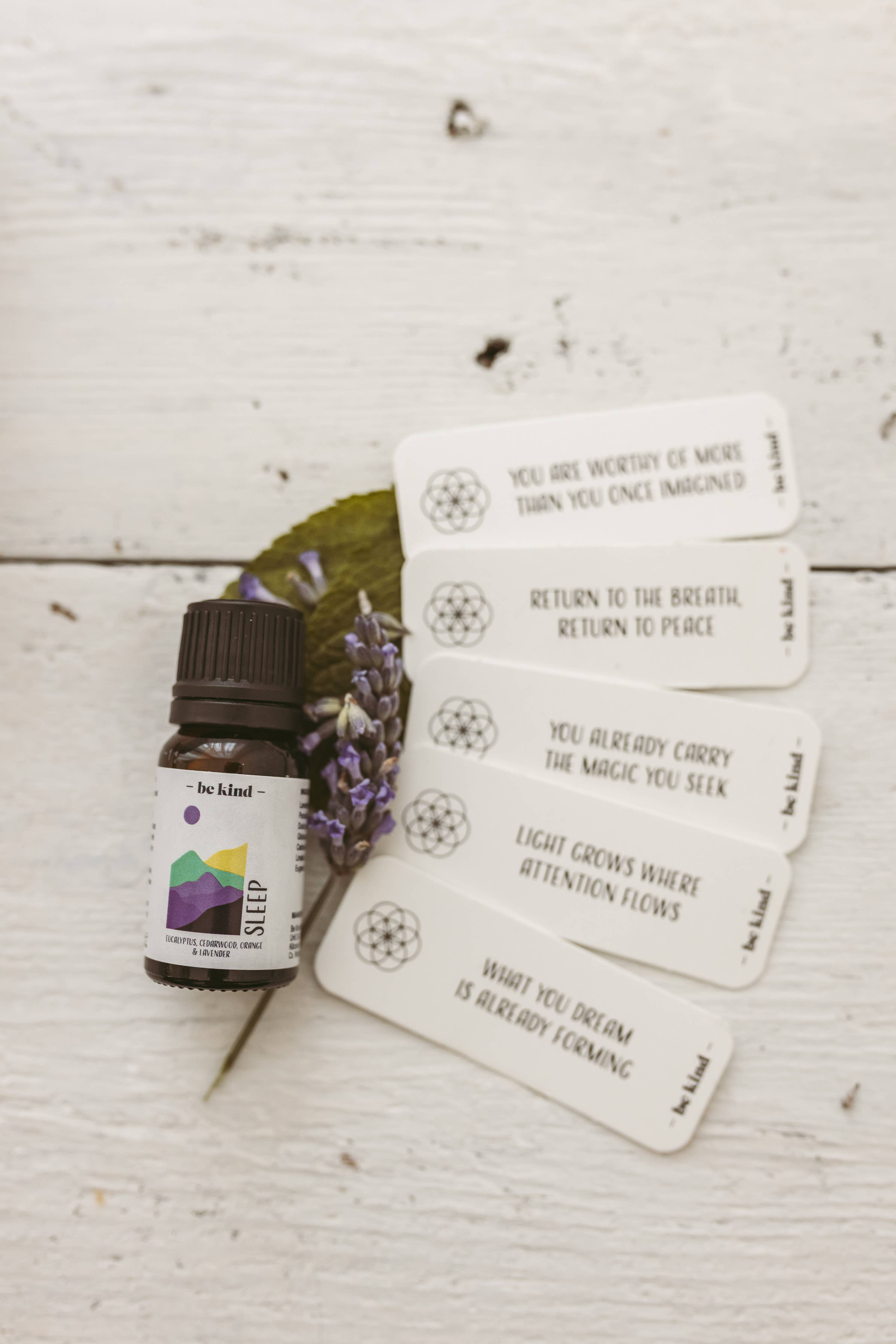 Sleep is a tranquil essential oil blend created to quiet the mind and signal calm to the body. Blended with Lavender, Orange, Eucalyptus, and Cedarwood, its soothing aroma helps you unwind, release tension, and prepare for a night of peaceful, restorative sleep.