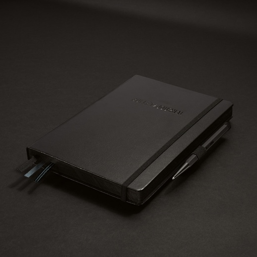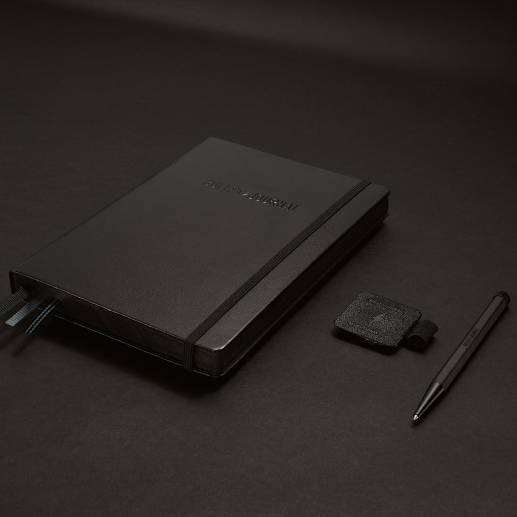 The Bullet Journal® Stealth Collector‘s Set is a limited design edition and combines three products in an exclusive gift box: the official Bullet Journal® notebook, the Drehgriffel Nr. 1 with black gel refill and the self-adhesive Pen Loop. Each of the three products is in black, tone on tone. Light reflection brings out the design elements such as relief printing, gloss varnish, black page cut and embossing. The Bullet Journal® Stealth Collector‘s Set is aimed at the worldwide Bullet Journal® community, at fans who feel like crowning their passion with something very special.