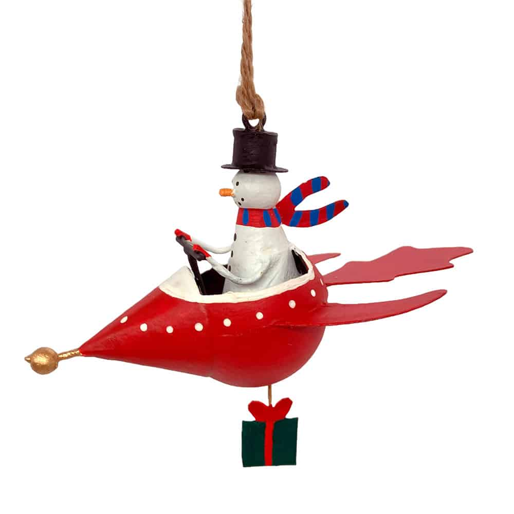 G-Bork Handmade Tin Snowman in Red Plane