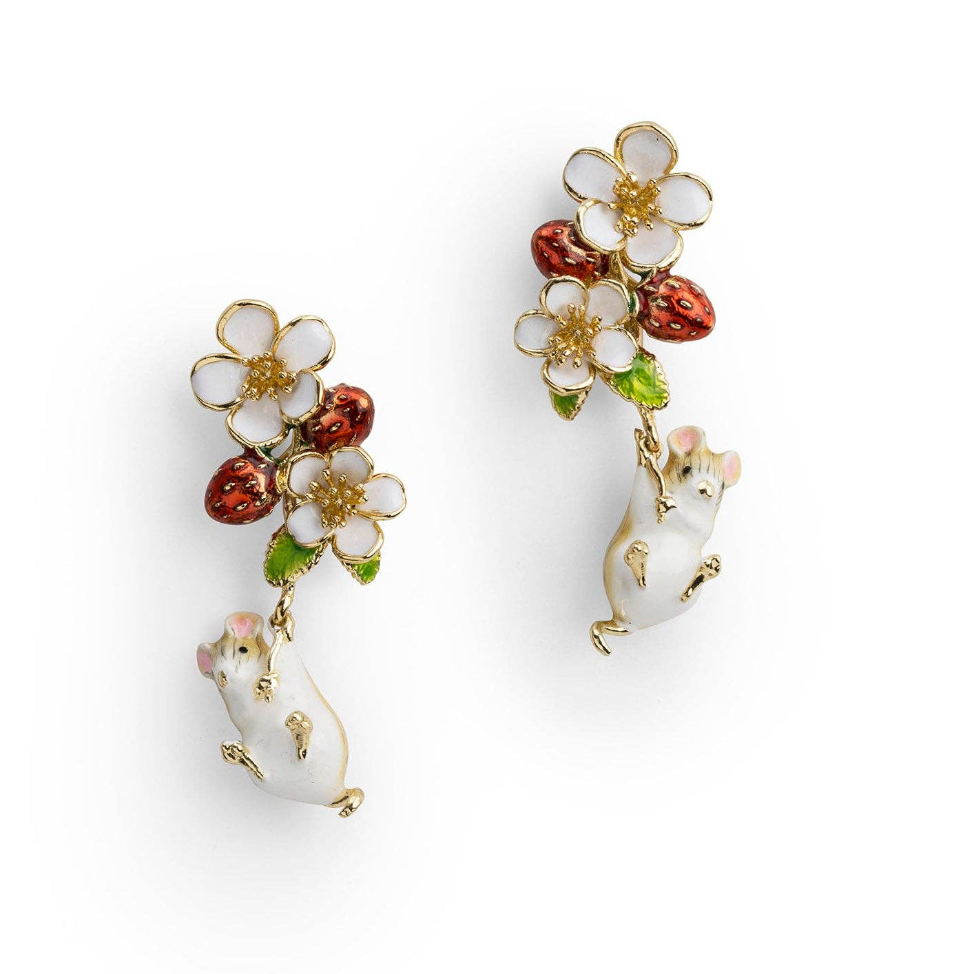 Bill Skinner Earrings - Strawberry & Hanging Mouse