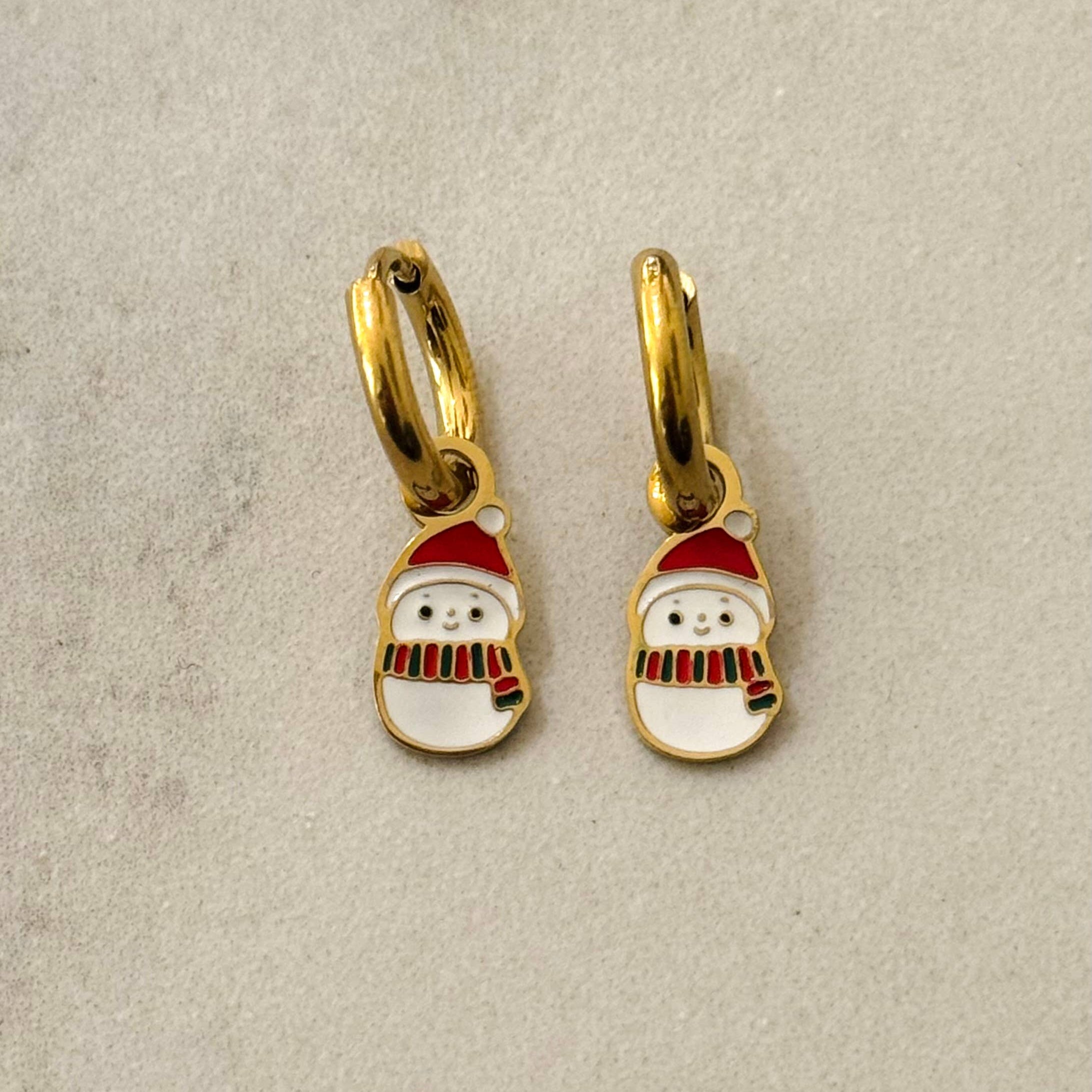 Cassette Barcelona Earrings - Christmas Snowman Hoops