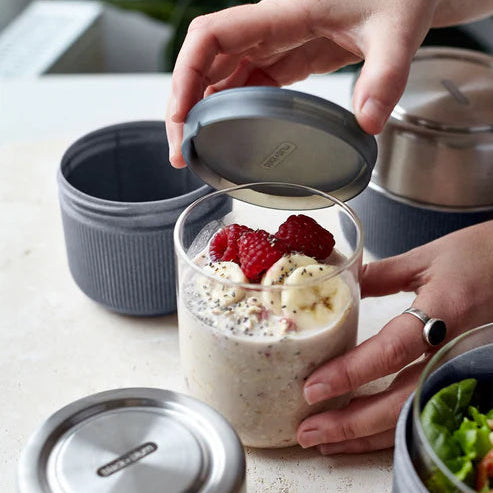 The perfect glass pot for taking your overnight oats, rice salad or pasta pot on-the-go.