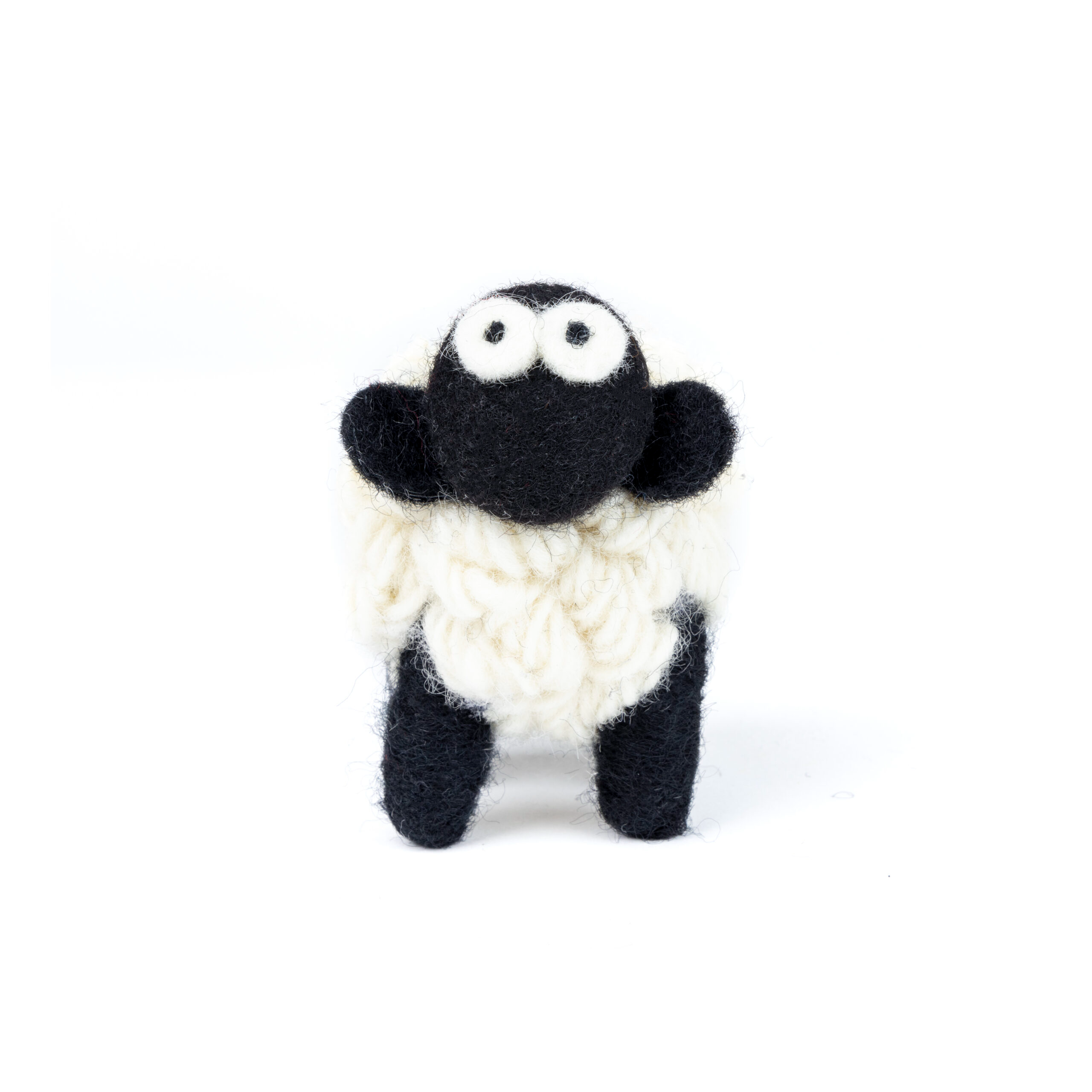 One small knitted sheep collectible from our Knit Bits collection. Approximately 8 cm tall. Handcrafted out of quality wool, our sheep are designed as unique standing collectibles and not suitable as toys.