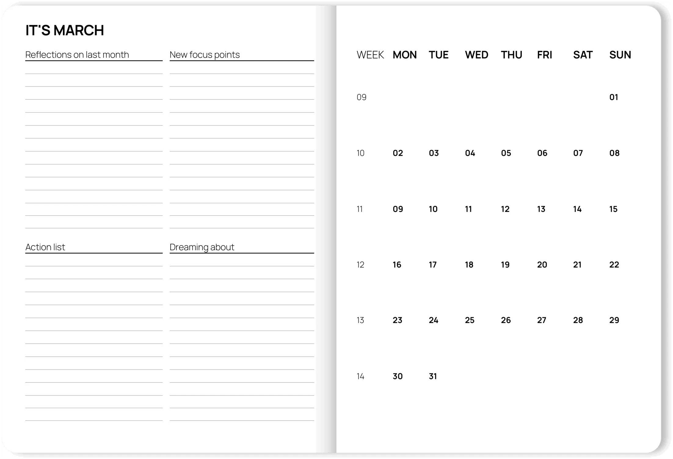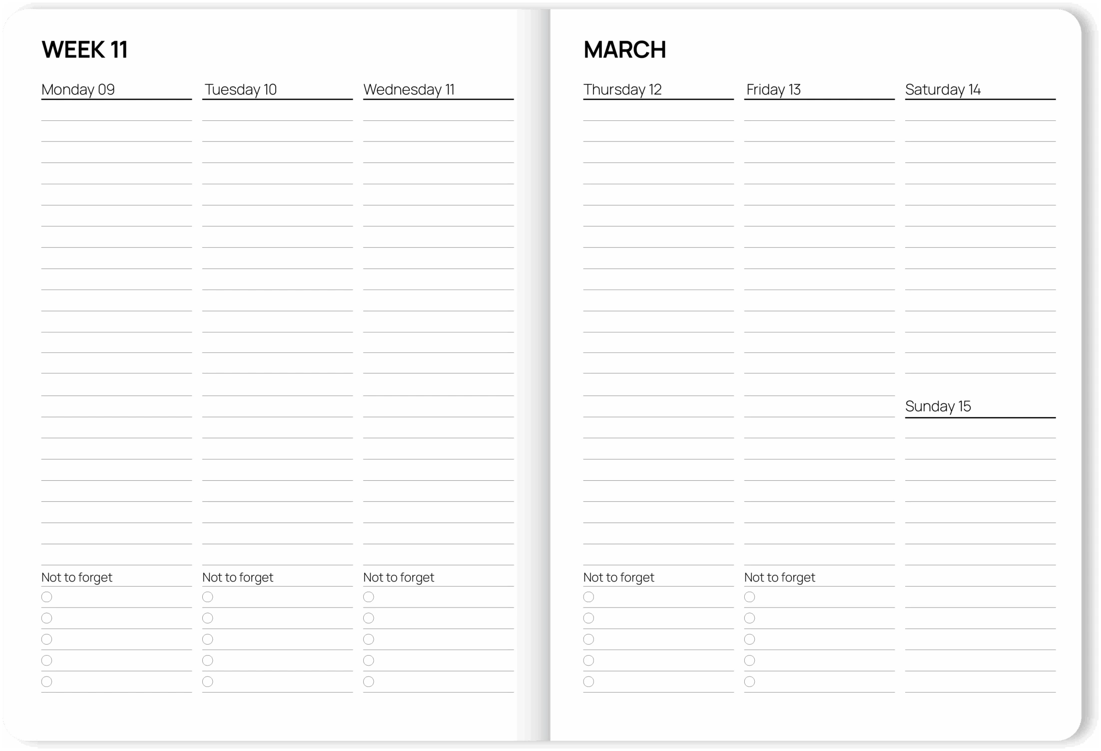 Also handy: there's extra space at the bottom of each week for tasks and notes. So no more hassle with illegible scribbles, just clear notes. And what's better than making new plans for the year with a beautiful, blank planner? Let 2026 begin—you're ready with a Fabrique planner.