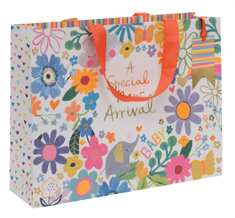 Celebrate Baby's birth with an adorable gift bag, and matching tag.
