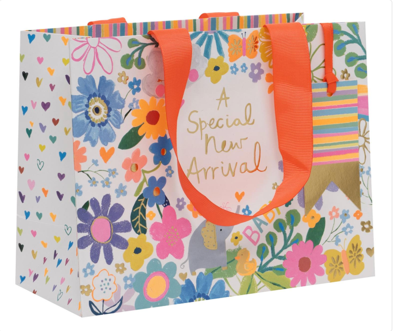Celebrate Baby's birth with an adorable gift bag, and matching tag.