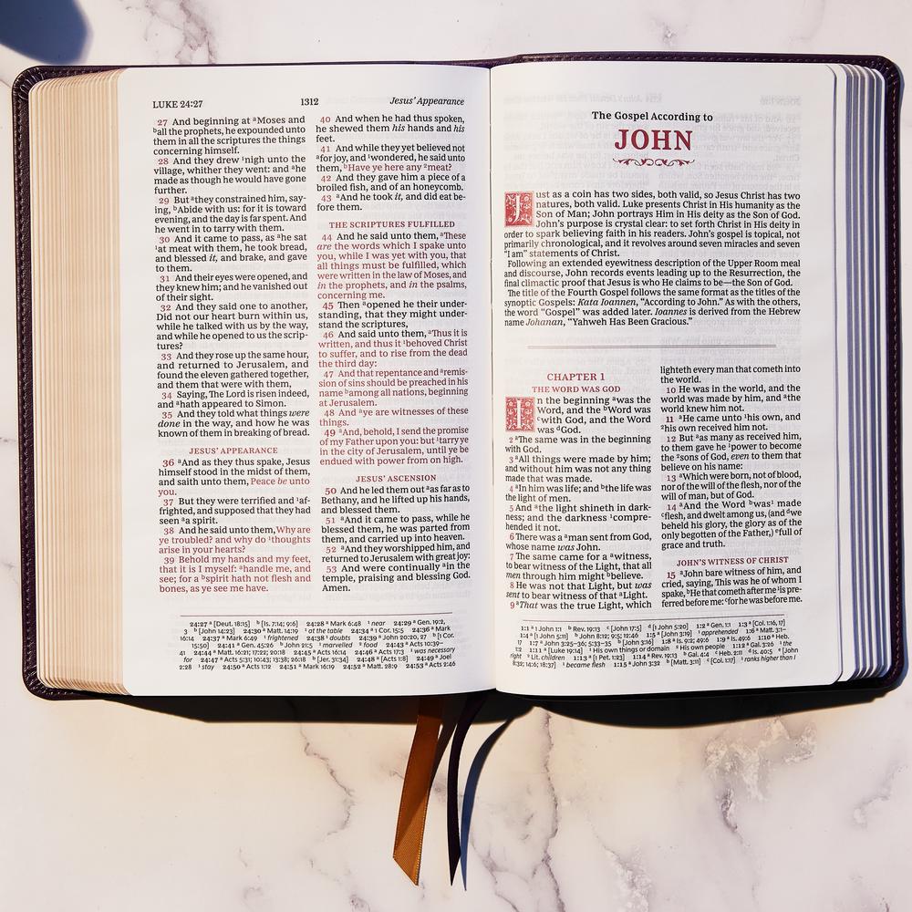 The Sovereign Collection continues Thomas Nelson's long history and stewardship publishing Bibles. King James Sovereign Collection editions draw from the legacy of the trustworthy and timeless KJV with elegant drop cap illustrations leading into each chapter, the exclusive Comfort Print typeface inspired by centuries-old Thomas Nelson editions, and more classic Bible details.