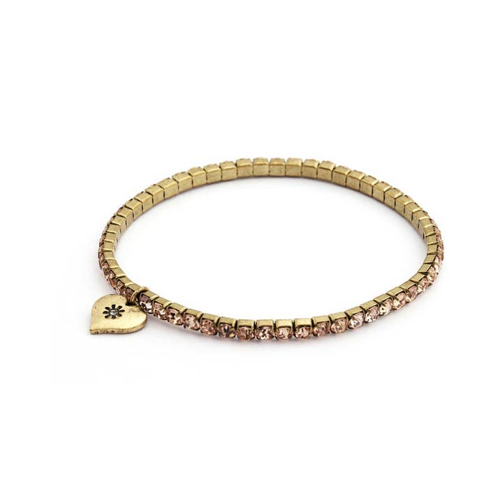 This gorgeous delicate bracelet is elasticated so easy to put on and is set with a row of beautiful vintage stones and finished with a heart. These bracelets look fantastic mixed together. Wear several together choosing complimenting colours from our range.