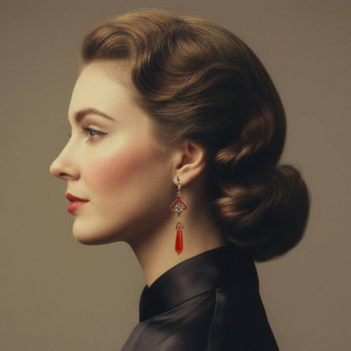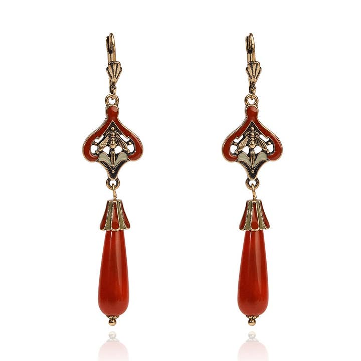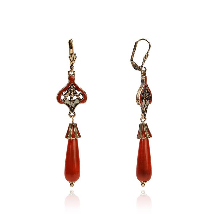 My story... I'm inspired by a trip to Standen House in West Sussex. The interior of the house has some of the best examples of William Morris who was a part of the Arts & Crafts movement that ran from the 1800's to the 1920's. These beautiful unique Aventurine natural stone drop earrings with hand painted enamel have been inspired by the intricate vintage furnishings and decorations at Standen House. Aventurine stones are loved for their properties of prosperity, compassion and perseverance. These earrings have a matching vintage style necklace and bracelet, so they can be worn on their own or as a set.