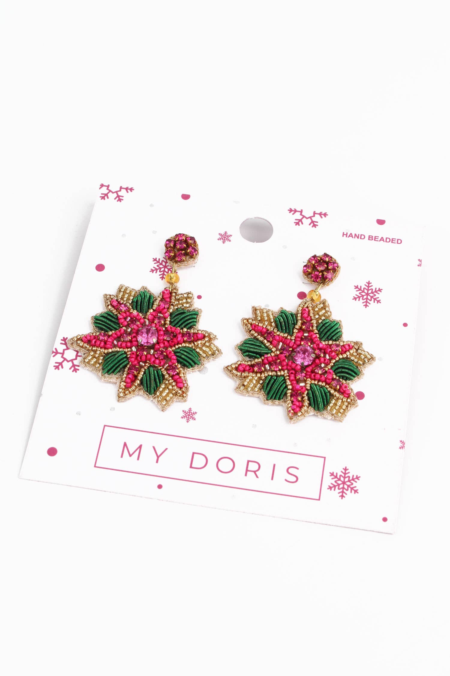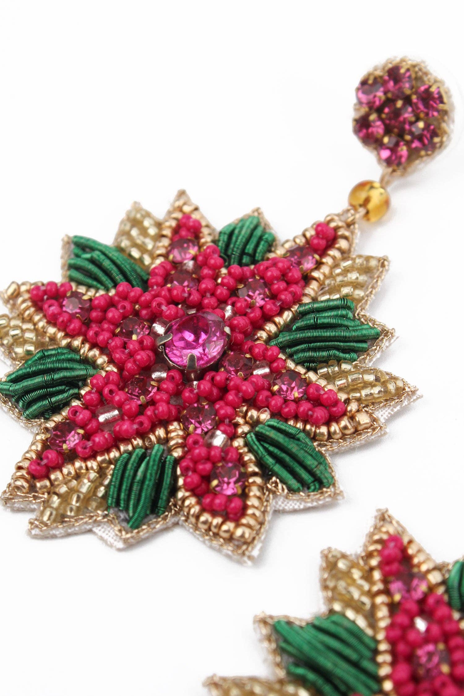 Make a statement with these beautiful Christmas Flower Earrings. Made with colourful beads and gems that sparkle in the light.