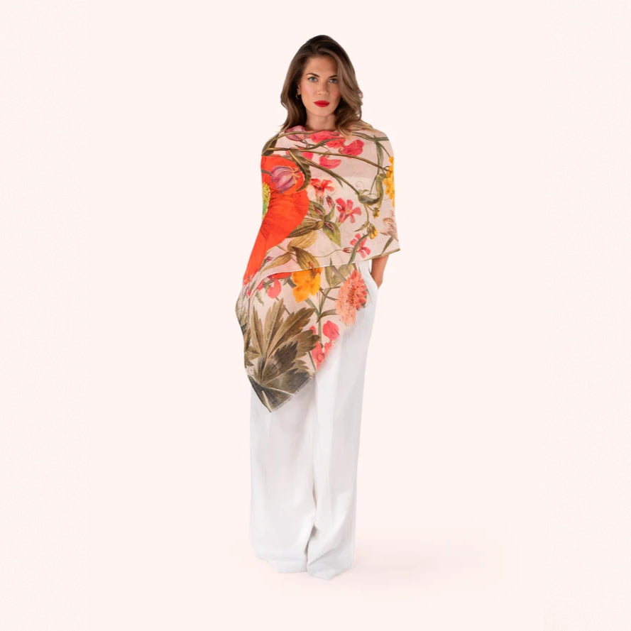 Dance amongst Fine Flowers within this beautifully ornate and soothing linen and cotton blend scarf. Sure to evoke feelings of skipping through floral gardens with loved ones in the early morning sunshine. Timeless and feminine in equal measure – sure to put a smile on any giftees face and glamour into their everyday!