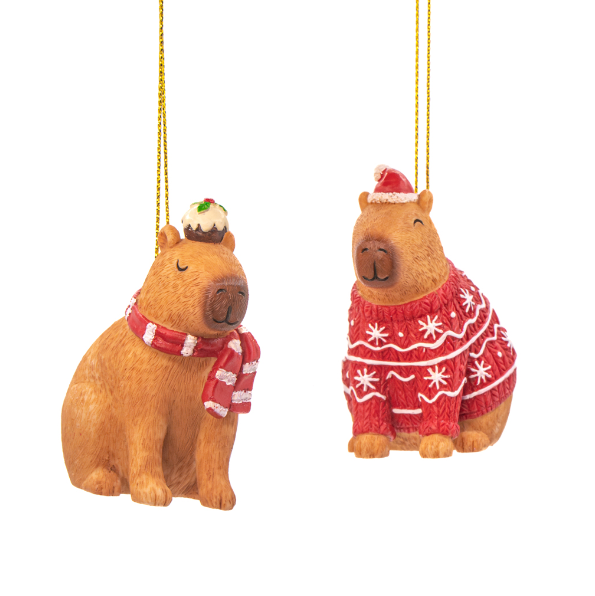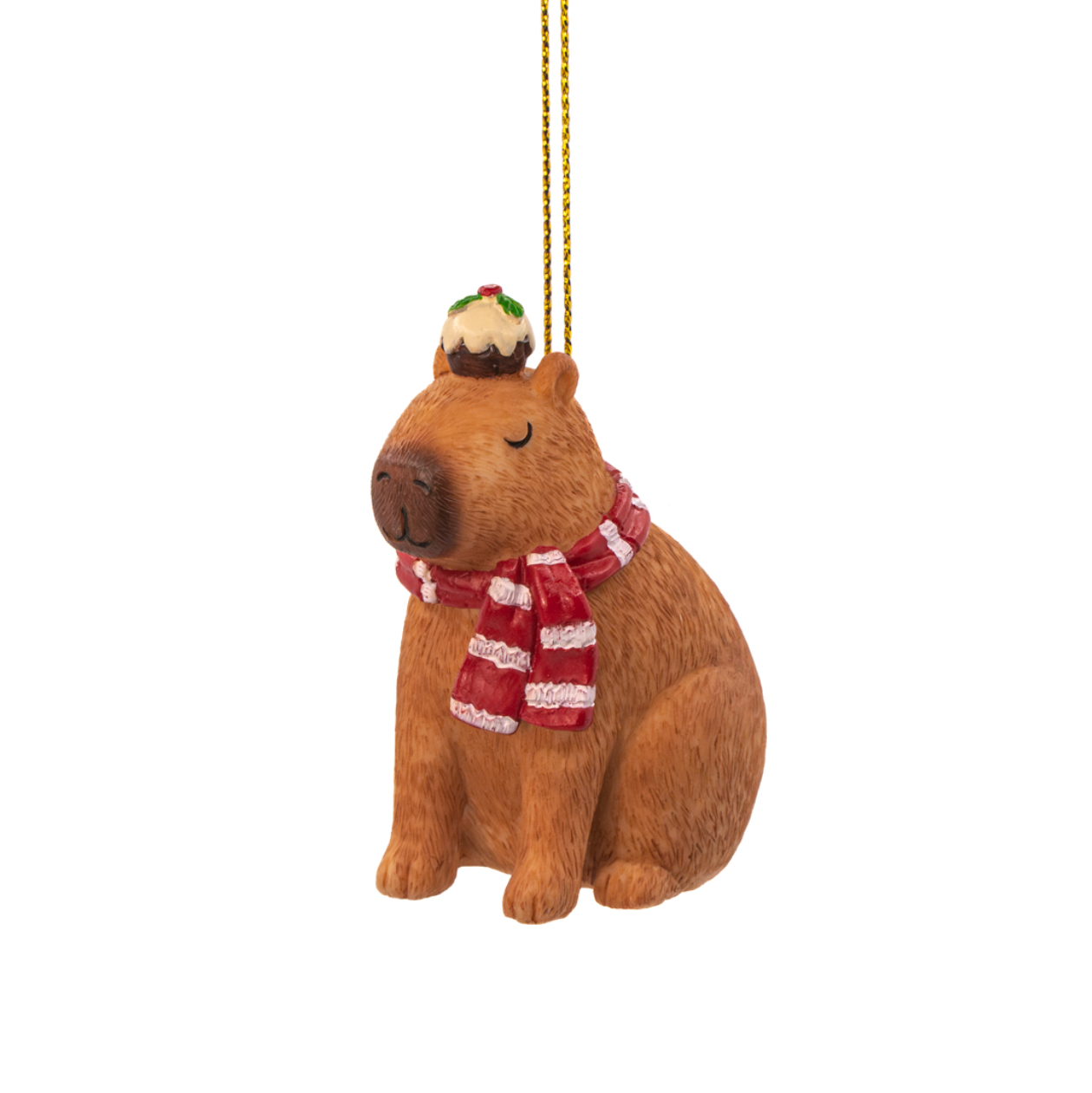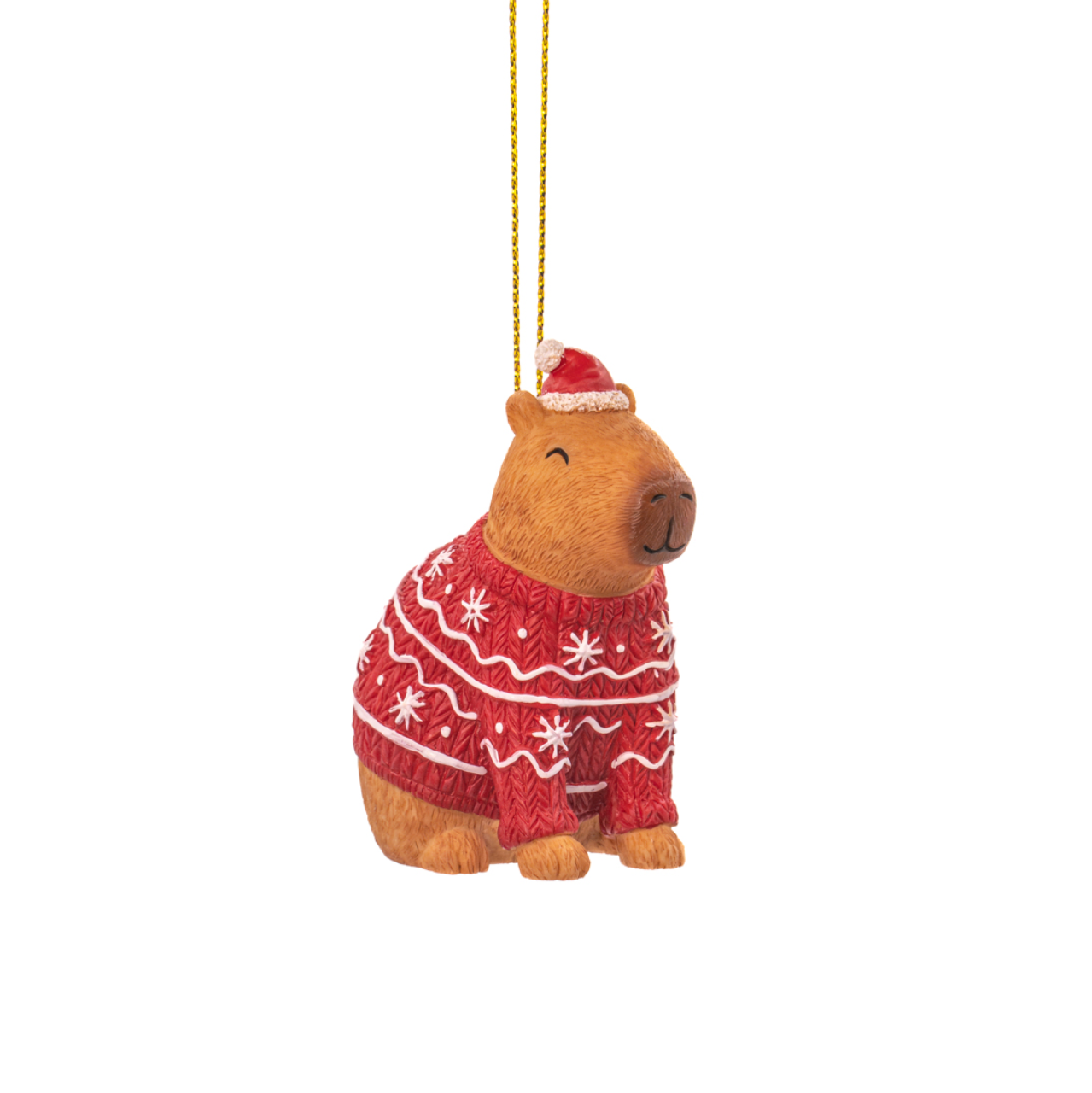 The Christmas Capybara ornament is a cute and whimsical addition to your tree. Featuring a capybara in festive attire, this ornament adds charm and fun to your holiday décor.