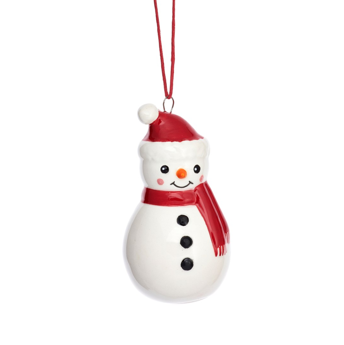 Add a touch of winter wonderland to your home with this cute snowman-shaped ceramic hanging decoration. Hand-painted, this decoration features a fun and whimsical design that is sure to bring a smile to your face.