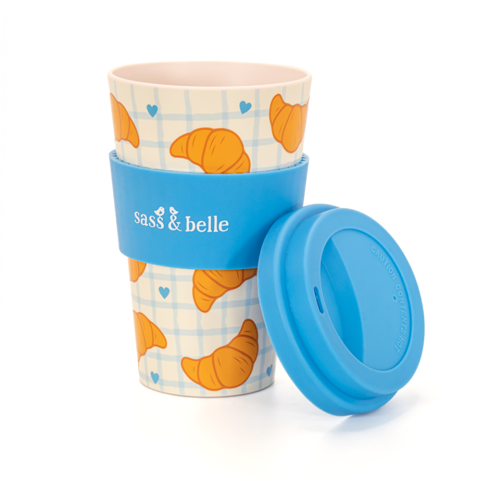 Start your day right with the Croissant Travel Coffee Cup, decorated with a warm croissant print and built for easy sipping on the go.