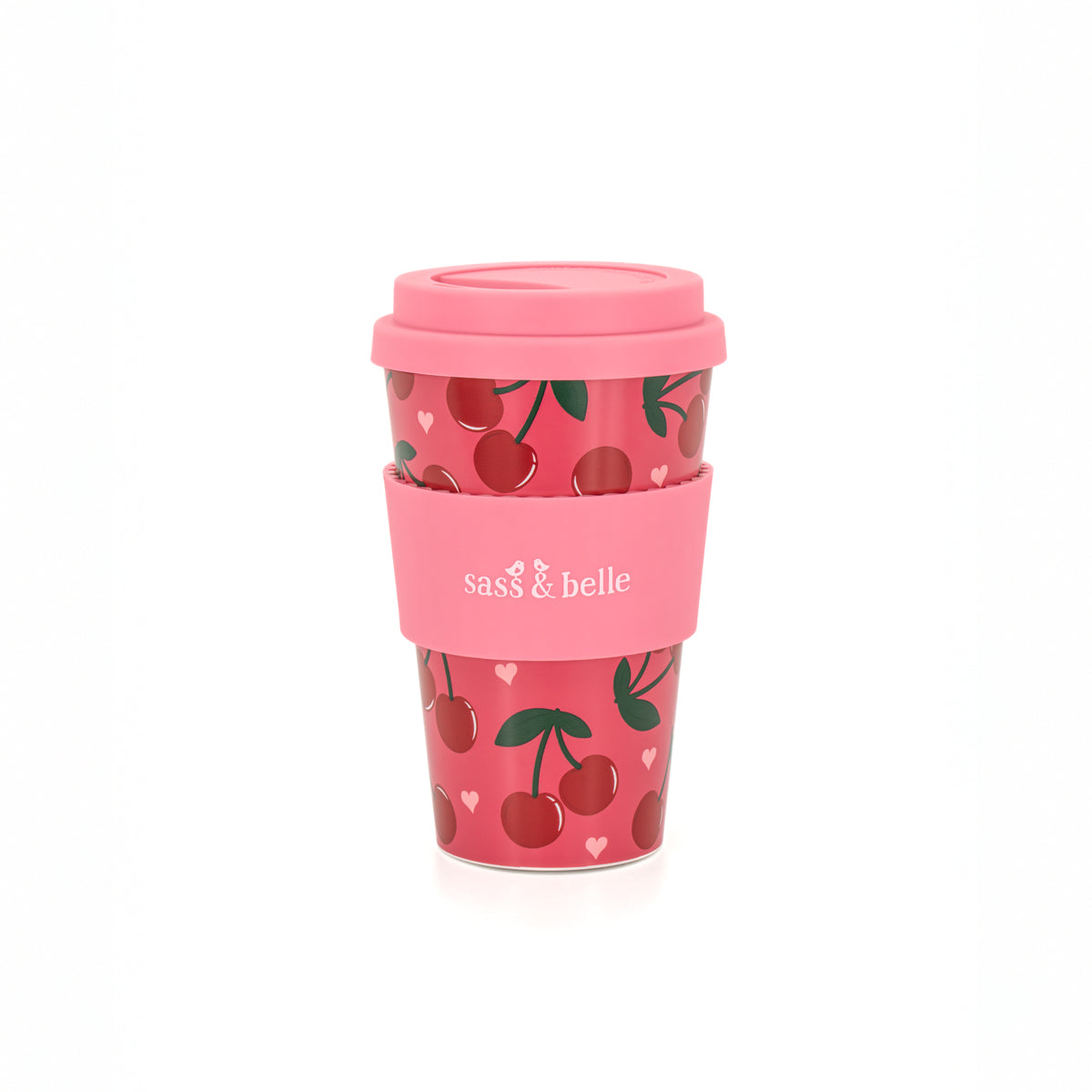 Enjoy your favourite drinks on the go with the Cherry Travel Coffee Cup, designed with a charming cherry print and a secure lid for convenience and style.