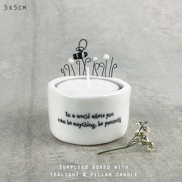 East of India - Porcelain Tea Light Holder - In a world be yourself