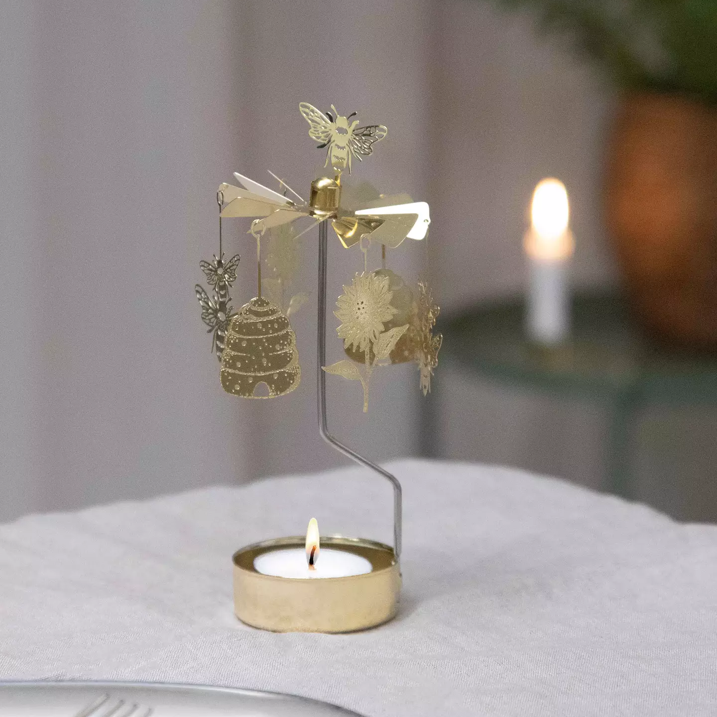 Create a peaceful atmosphere with this beautiful and unique tealight spinner with bees, honey and sunflowers. Perfect as a gift for yourself or someone you care about.