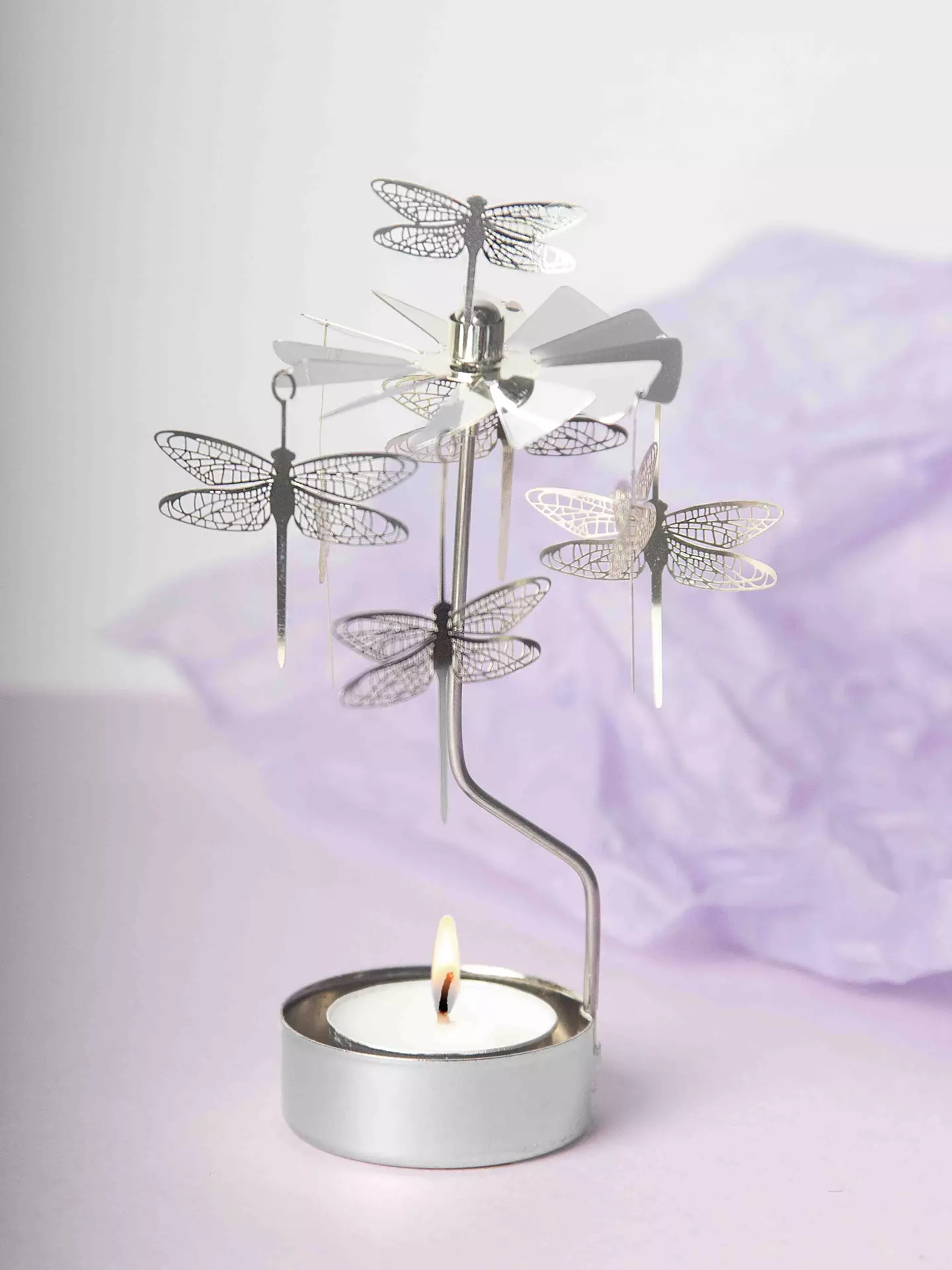 Angel charms in silver metal that spin with the heat from the light. These dragonflies will have you spinning with joy!