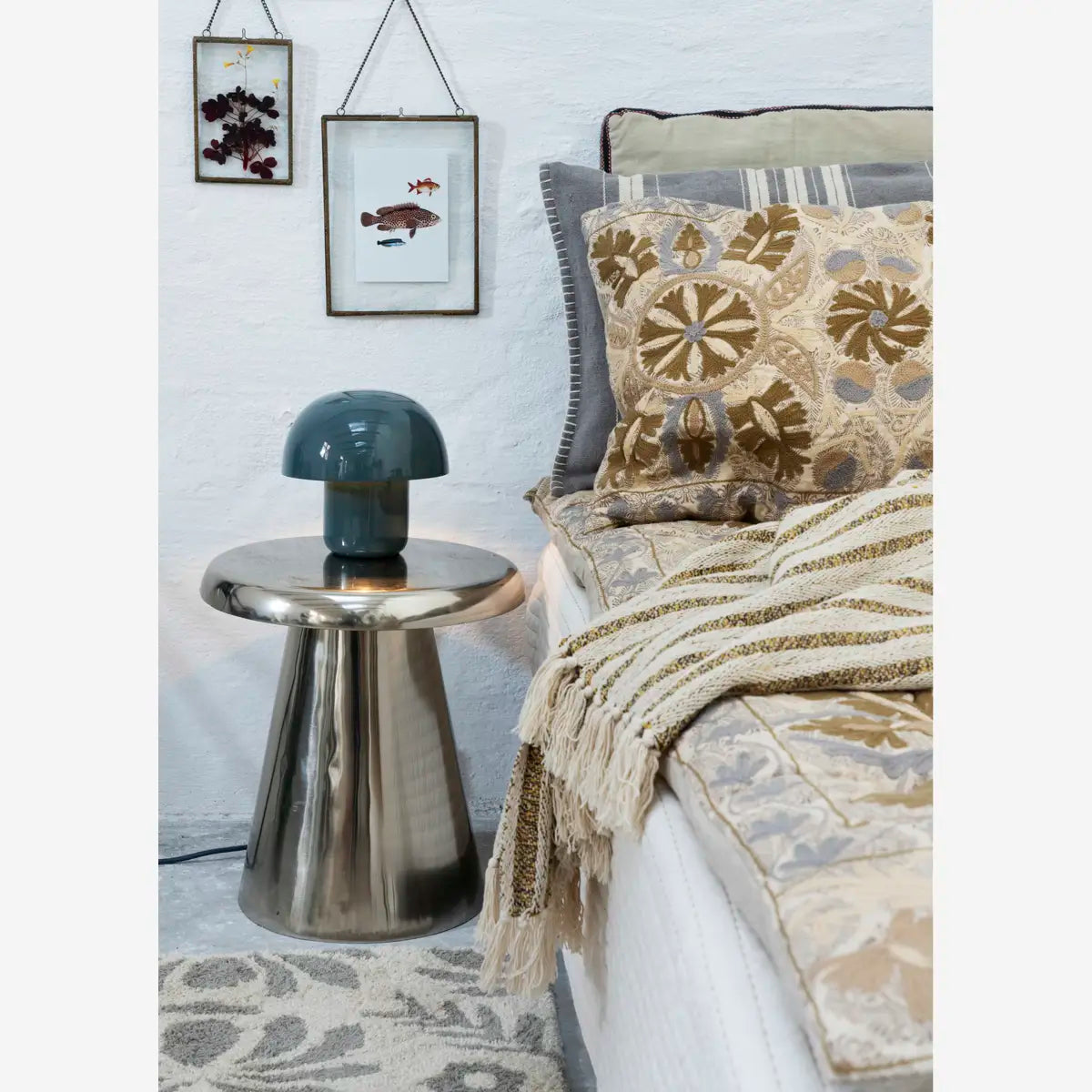 Elevate your space with this suzani embroidered mattress in ivory, dusty blue, khaki and greige, combining printed cotton, tactile embroidery and a soft polyester filling. Inspired by the persian art of suzani—meaning “needle”—its symbolic, colourful motifs bring happiness and vitality, and it pairs beautifully with available matching pillowcases for an eclectic, global look.