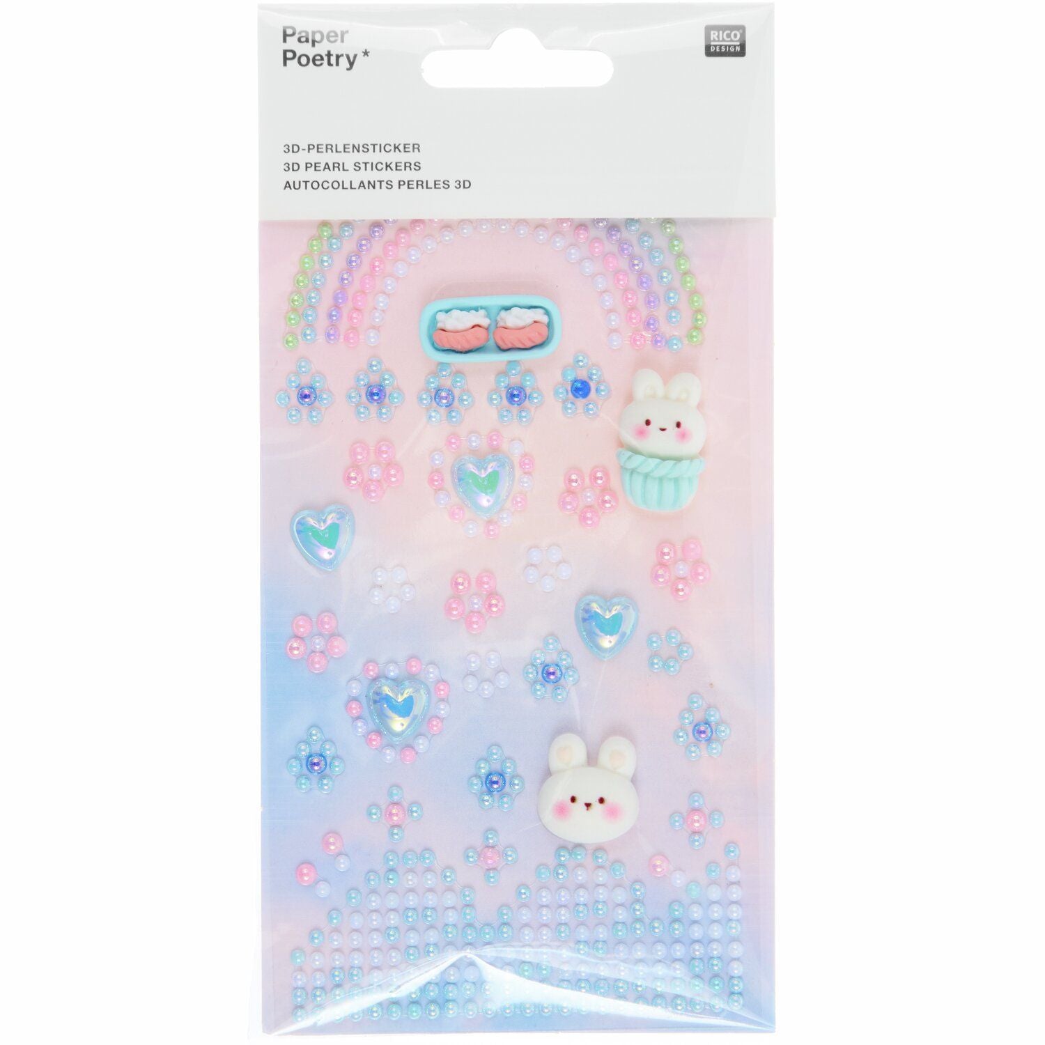 The delicate pearls in various shades of blue create a sophisticated, shimmering look, while the lovingly crafted 3D figures add captivating depth. This versatile set offers countless possibilities for stylishly embellishing cards, gifts, phone cases, office supplies, or decorations.