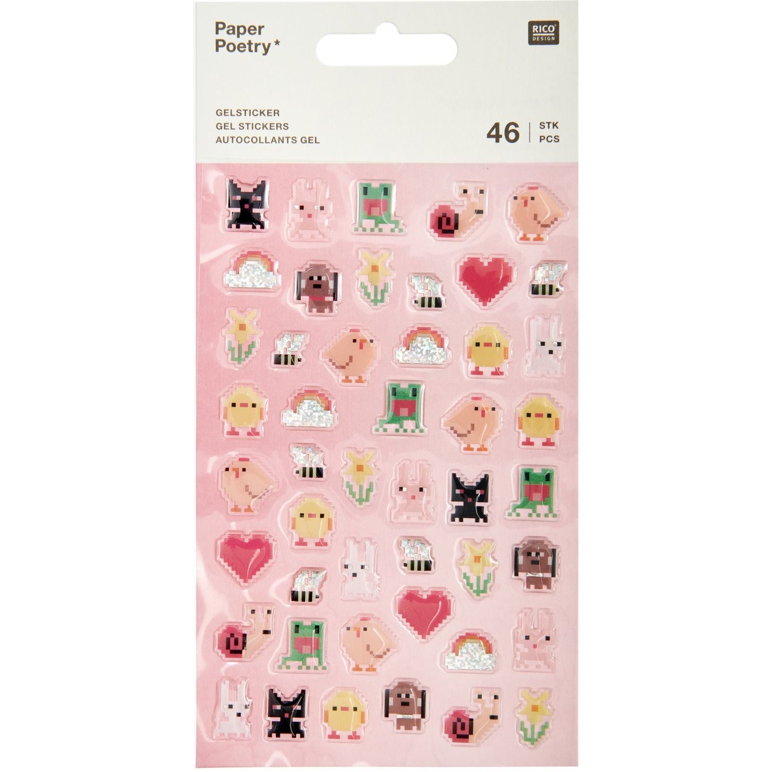 Use these gel stickers to embellish your handmade cards, painted photo frames, or gift boxes. The stickers adhere to all smooth surfaces and their diverse shapes and colours make them ideal for decoration.