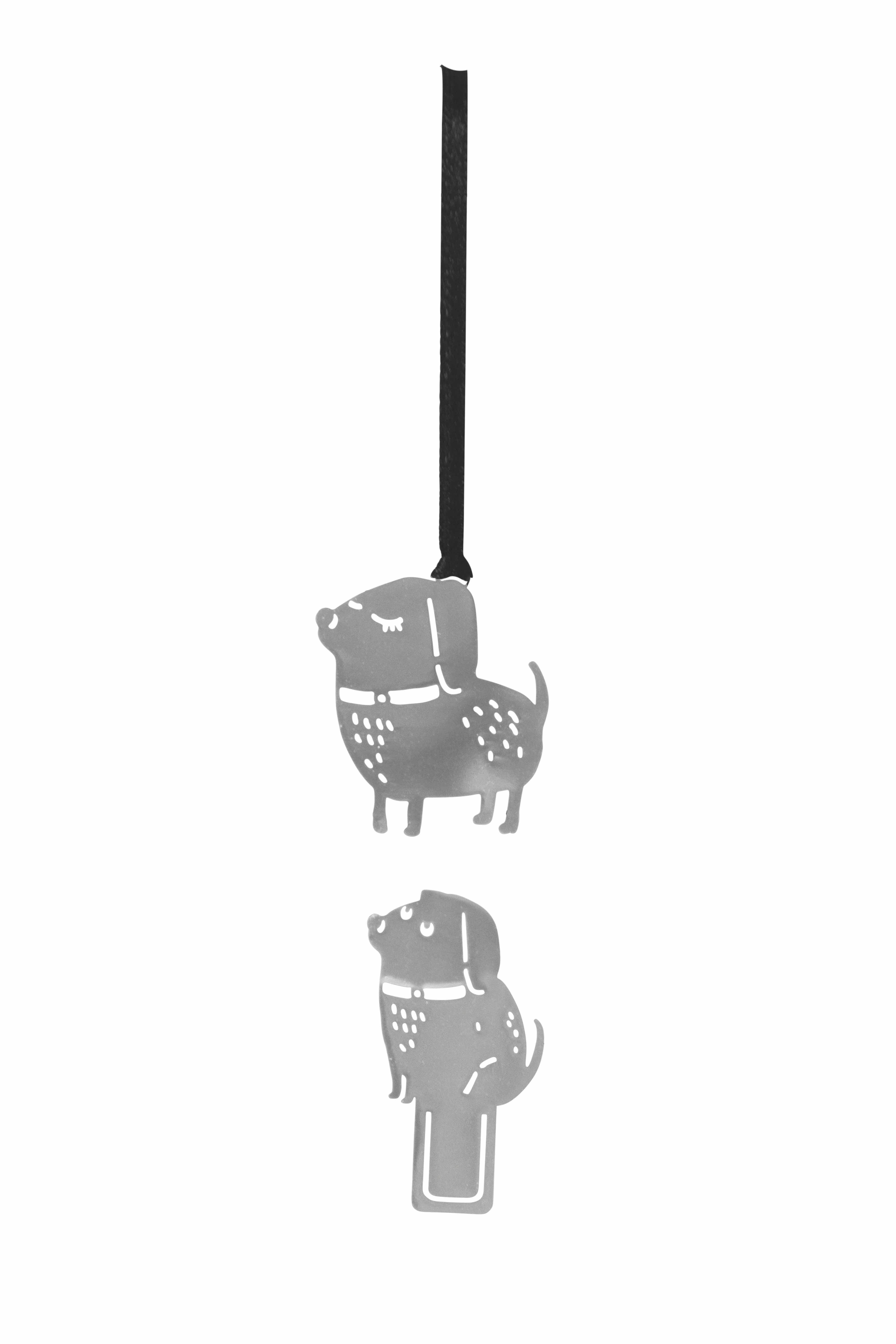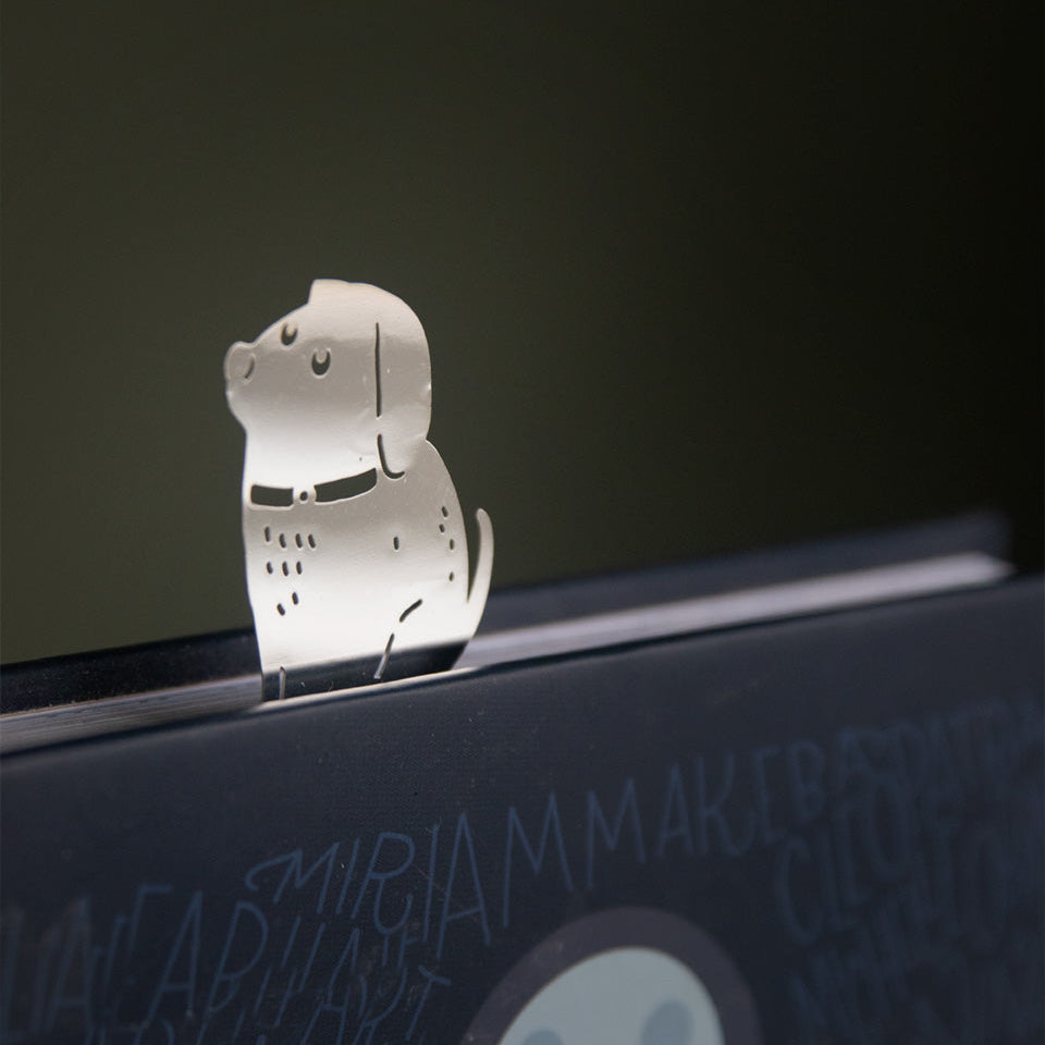 2-pcs bookmarks in silver metal. Stop folding dog ears in your book, use a funny dog bookmark instead!