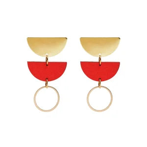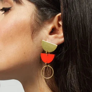 Jenny hand painted lasercut wood and brass statement earrings in sage green with stainless steel ear pins. Colours are in reverse on the back (Sage/Emerald, Red/Pink, Pink/Red, Blue/Powder Blue, Lilac/Lilac