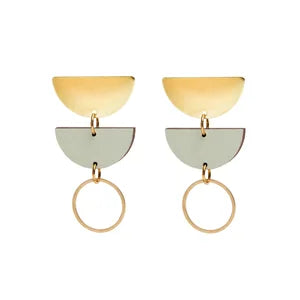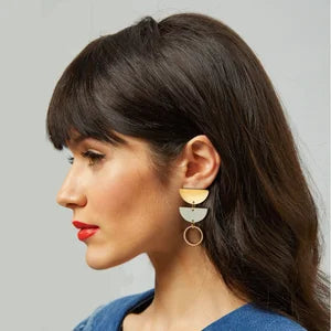 Chrissy Statement Earrings in abstract textured brass with rectangle of