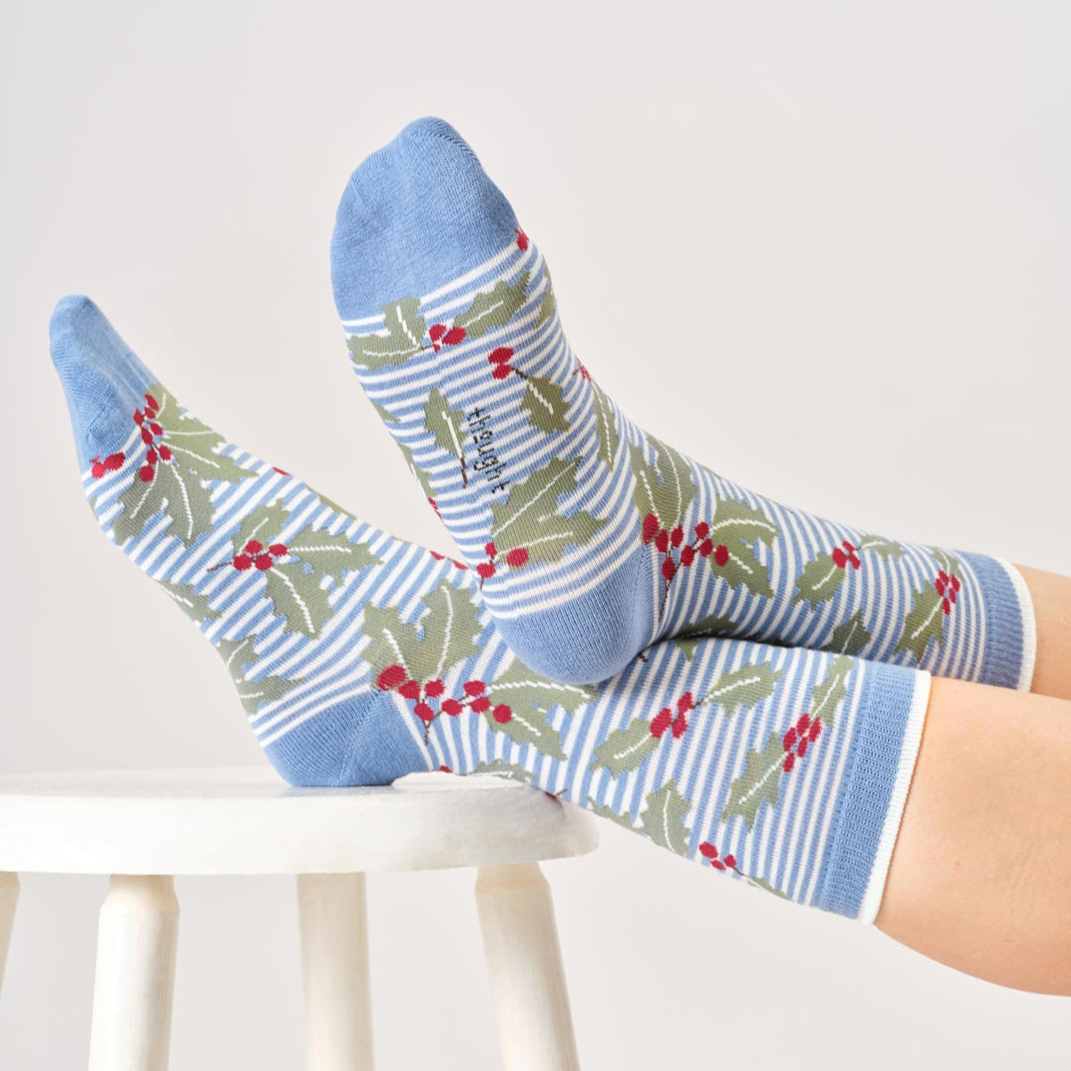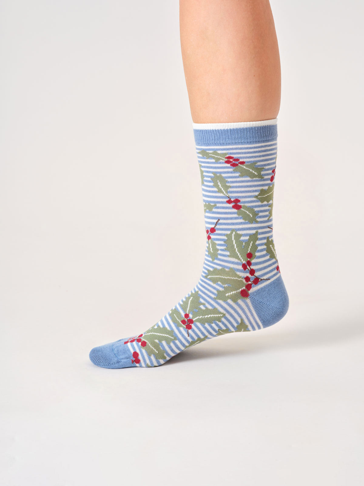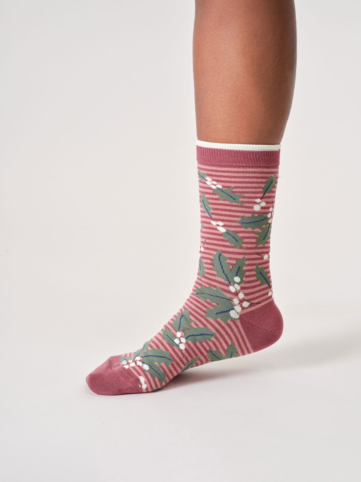 Thought Ladies Socks - Holly & Berries Stripe Bamboo Socks
